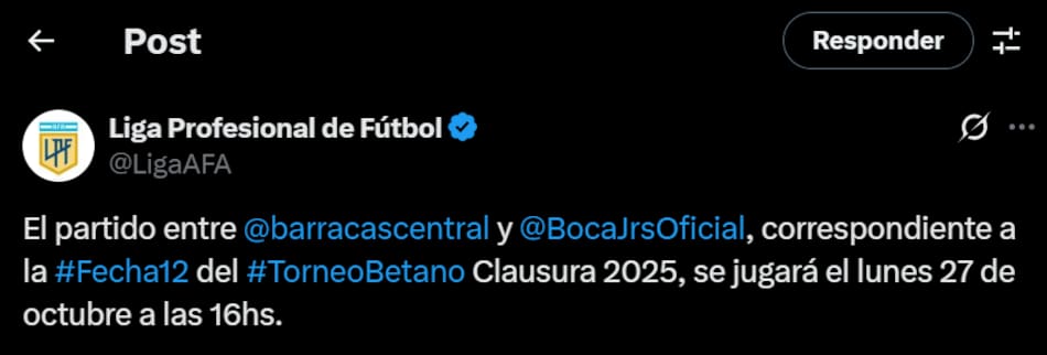 La Liga Profesional de Fútbol anunció cuándo se jugará el partido entre Barracas Central y Boca, por la fecha 12 del Torneo Clausura. El encuentro había sido postergado por la muerte de Miguel Ángel Russo.
