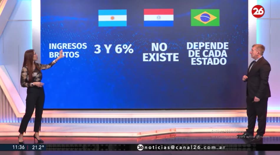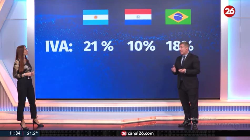 Informe económico de Canal 26 sobre los impuestos en Argentina en comparación con Paraguay y Brasil.