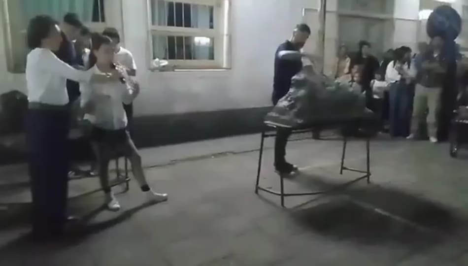 El grupo de alumnos y docentes realizaban un experimento que simulaba ser la erupción de un volcán en la escuela y, aunque todo parecía bajo control, en cuestión de segundos la reacción química se desbordó y el artefacto explotó. La secuencia quedó registrada en un video y se puede ver como el experimento detona y lanza fragmentos hacia el público.