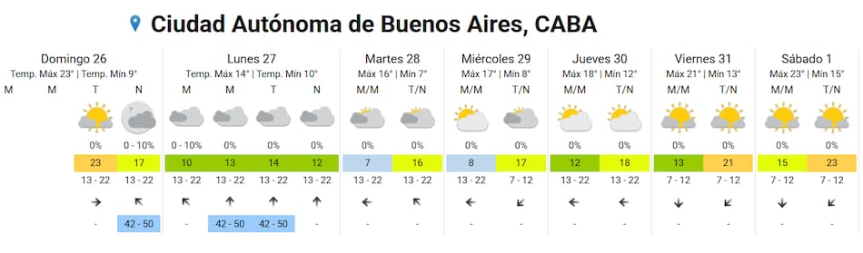 La semana en la Ciudad de Buenos Aires será cambiante en lo que respecta a las condiciones meteorológicas. Si bien el comienzo tiene temperaturas templadas, se esperan cambios rotundos que obligarán a volver a usar más abrigos, según indica el pronóstico para el territorio porteño.