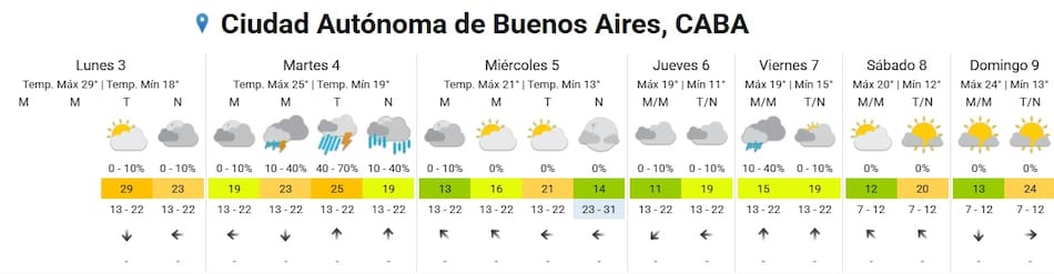 Como mencionamos al inicio, la llegada de la tormenta se sentirá en el termómetro. El miércoles 5 de noviembre, la temperatura bajará, con una mínima de 13 y una máxima de 21 grados, dejando a un lado el intenso calor.