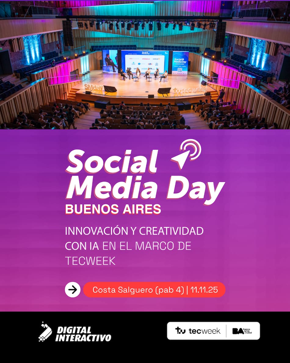 Une nueva edición del “Social Media Day Buenos Aires” se realiza en la Ciudad el martes 11 de noviembre. Esta vez, con foco en Innovación y Creatividad con inteligencia artificial (IA). Será en el pabellón 4 del Centro Costa Salguero, como parte de Tecweek, la semana de las tecnologías emergentes y creativas de Buenos Aires, organizada por el Gobierno de la Ciudad.